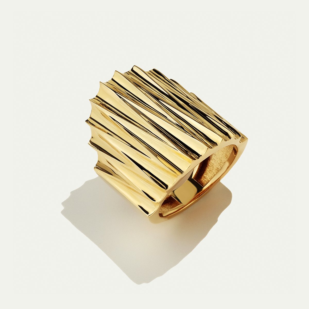 Cesur ve modern bir duruş sergileyen Maya 14 Ayar Altın Keskin Yiv Desenli Yüzük, dalgalı yüzey dokusuyla heykelsi bir görünüm kazanır. Işığı farklı açılardan yansıtan hatları, güçlü bir estetik sunarken aynı zamanda sofistike bir şıklık yaratır. 14 ayar altın kullanılarak ustalıkla üretilen tasarım, modern çizgileriyle Regold’un özgün yorumunu yansıtır. Regold logolu özel kutusunda ve garanti belgesi ile sunulmaktadır.