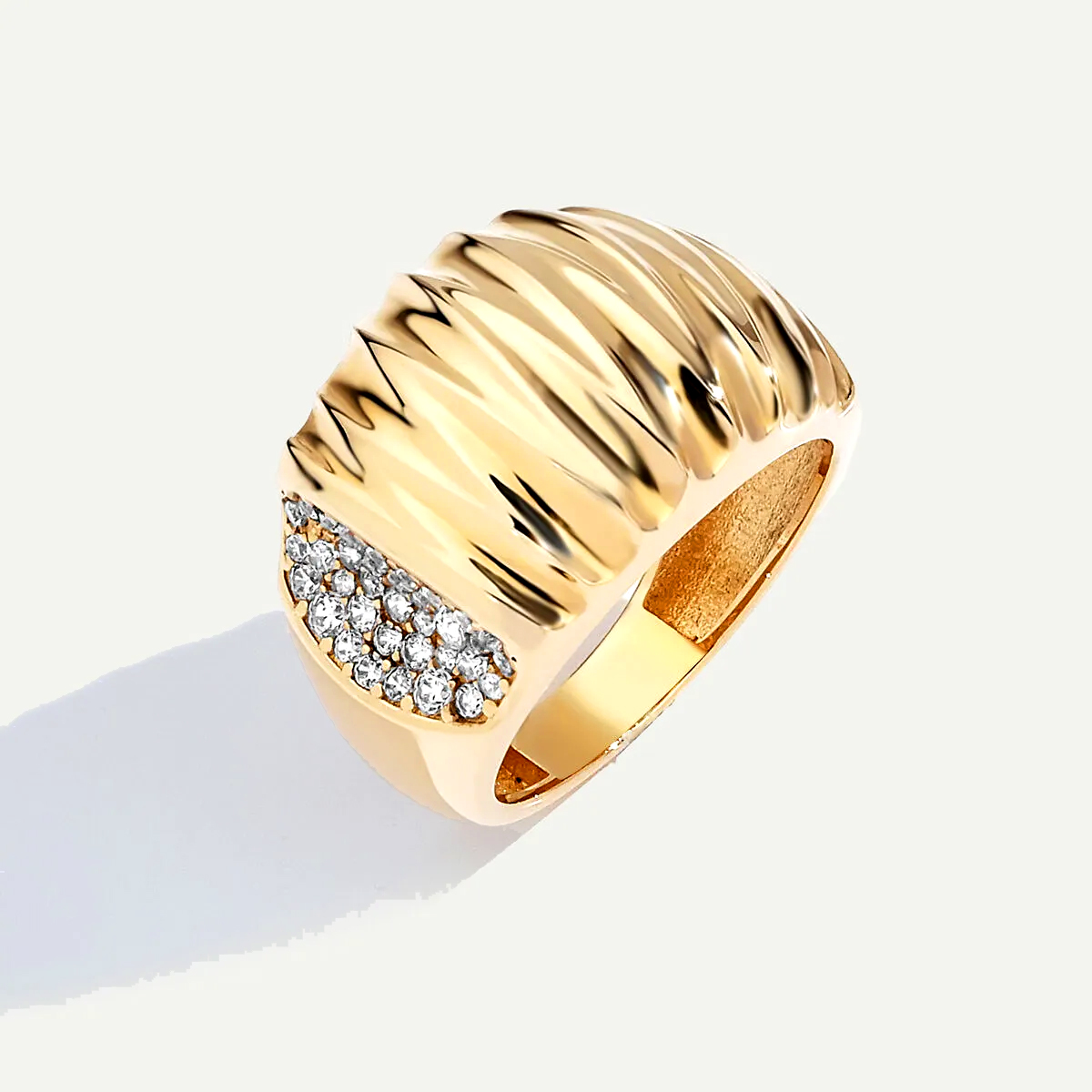 Maya koleksiyonuna ait bu Maya 14 Ayar Altın Yanı Taşlı Yüzük, modern çizgiler ve klasik ışıltının birleşimi. Yüzüğün yan kısmında yer alan parlak taşlar, altının güçlü formuyla kontrast yaratarak tasarıma sofistike bir görünüm katıyor. Günlük şıklığınızı tamamlamak için ideal olan bu model, özel davetlerde de göz alıcı bir etki yaratır. Regold logolu özel kutusunda ve garanti belgesi ile sunulmaktadır.