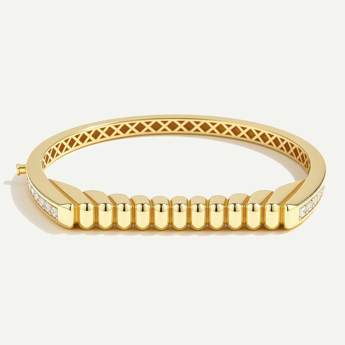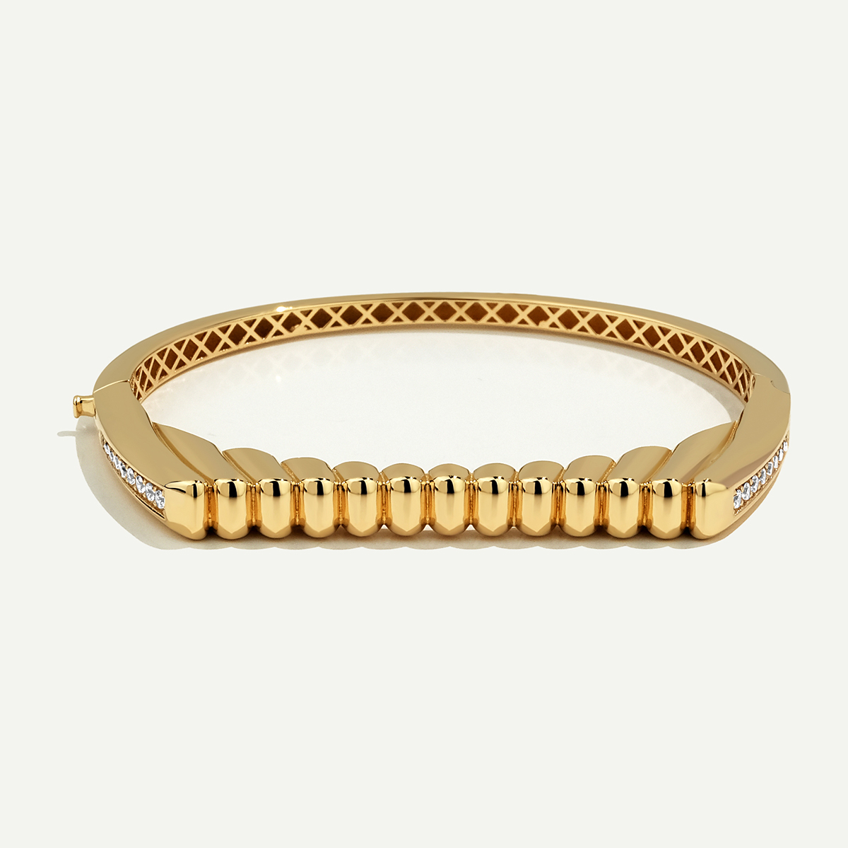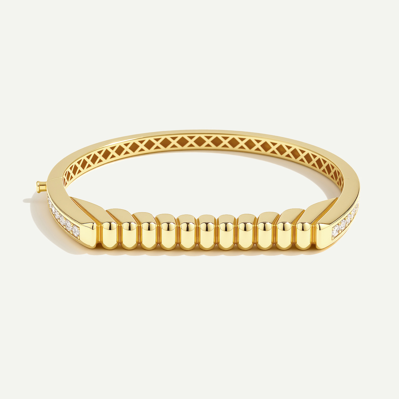 Maya koleksiyonunun modern ve zarif çizgilerini yansıtan Maya 14 Ayar Altın Yanları Taşlı Kelepçe, bileğinizdeki her harekette parıltı saçan göz alıcı bir tasarımdır. Kelepçenin yan kısımlarını süsleyen ışıltılı taş sıraları, altının pürüzsüz yüzeyinde sofistike bir dokunuş yaratır. Sade ancak dikkat çekici bu parça, gündelik kullanım ve özel günler için mükemmel bir uyum sunar. Regold logolu özel kutusunda ve garanti belgesi ile sunulmaktadır.