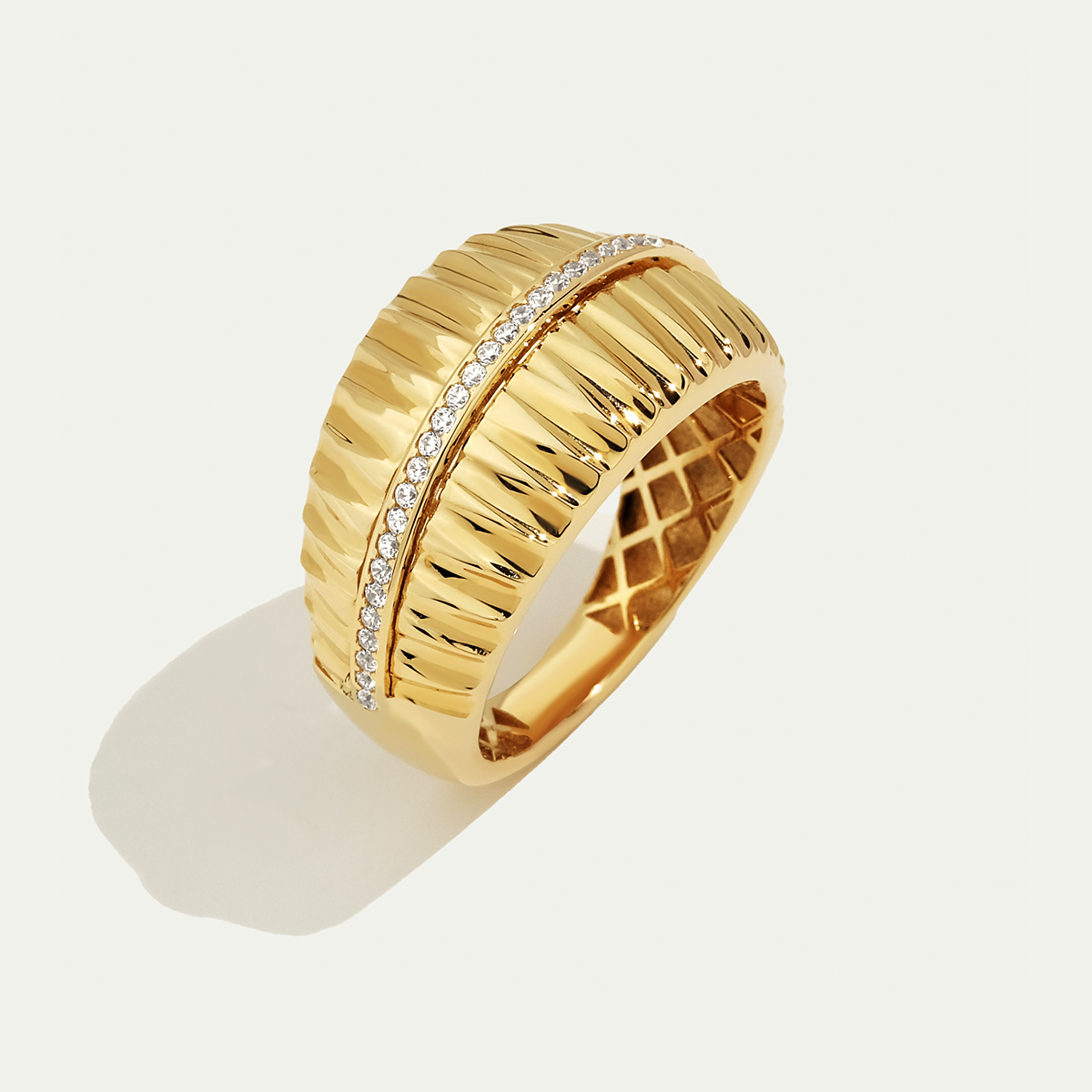 Maya 14 Ayar Altın Yiv Desenli Su Yolu Taşlı Yüzük