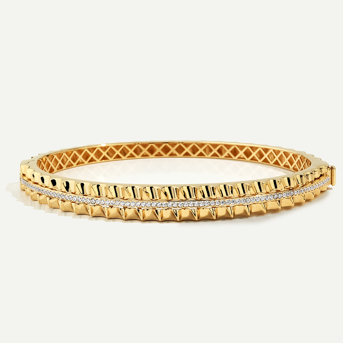 Göz alıcı bir tasarıma sahip Maya 14 Ayar Altın Yiv Desenli Taşlı Kelepçe, modern çivili desen dokusu ile dikkat çekiyor. Orta bölümde yer alan zarif taş sırası ise bileziğe ışıltılı bir denge katıyor. Güçlü ve iddialı tarzıyla hem günlük kombinlerde hem de özel davetlerde şıklığınızı tamamlayacak eşsiz bir parça. Regold logolu özel kutusunda ve garanti belgesi ile sunulmaktadır.