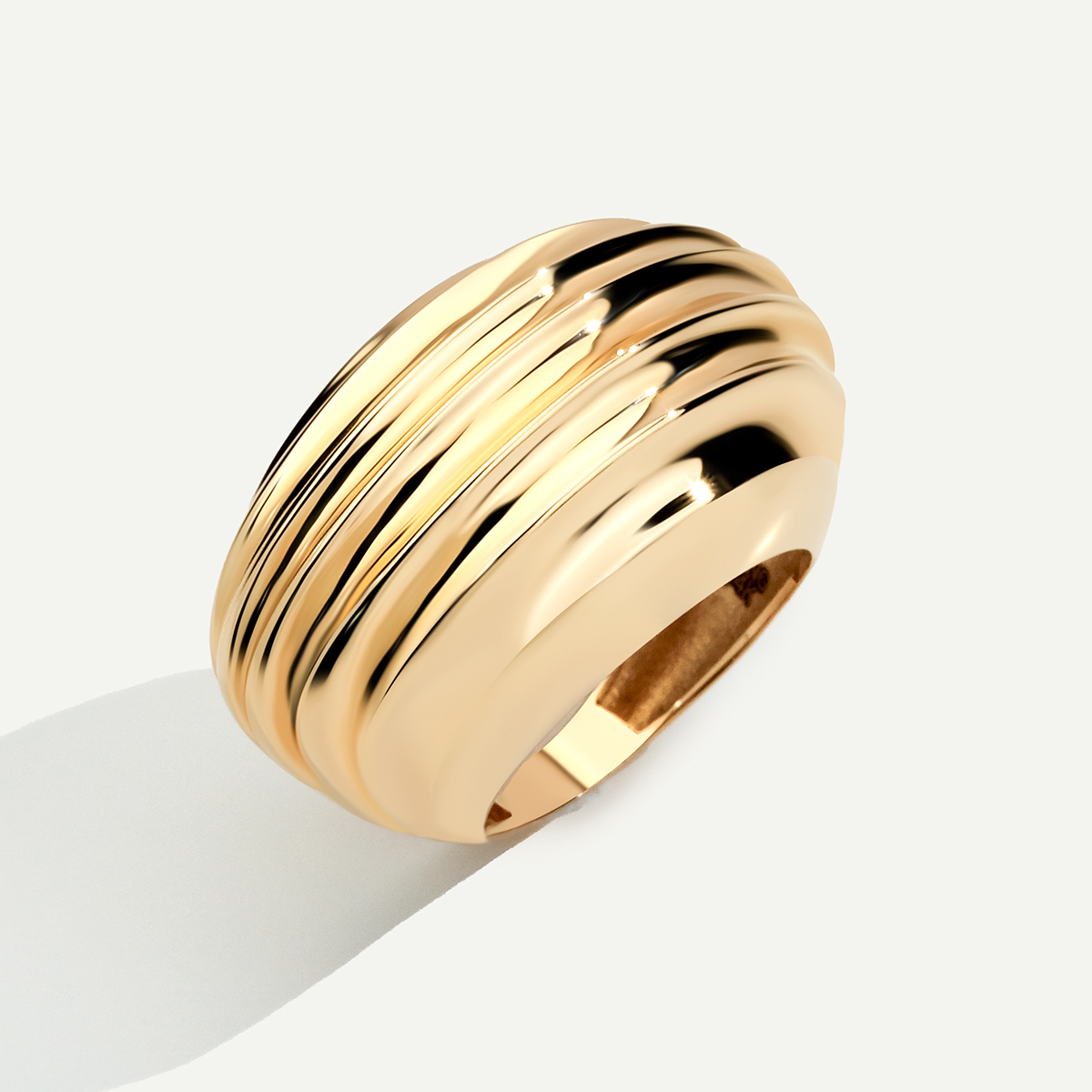 Maya14 Ayar Altın Yüzük, modern çizgilerin güçlü bir formda birleştiği iddialı bir tasarım sunuyor. Yüzüğün parlak yüzeyi boyunca uzanan çizgili detaylar, altın dokusuna derinlik kazandırıyor. Geniş formu sayesinde parmakta güçlü bir duruş sergileyen bu yüzük, hem günlük kullanımda fark yaratmak isteyenlere hem de özel günlerde şıklığını tamamlamak isteyenlere hitap ediyor. Regold logolu özel kutusunda ve garanti belgesi ile sunulmaktadır.