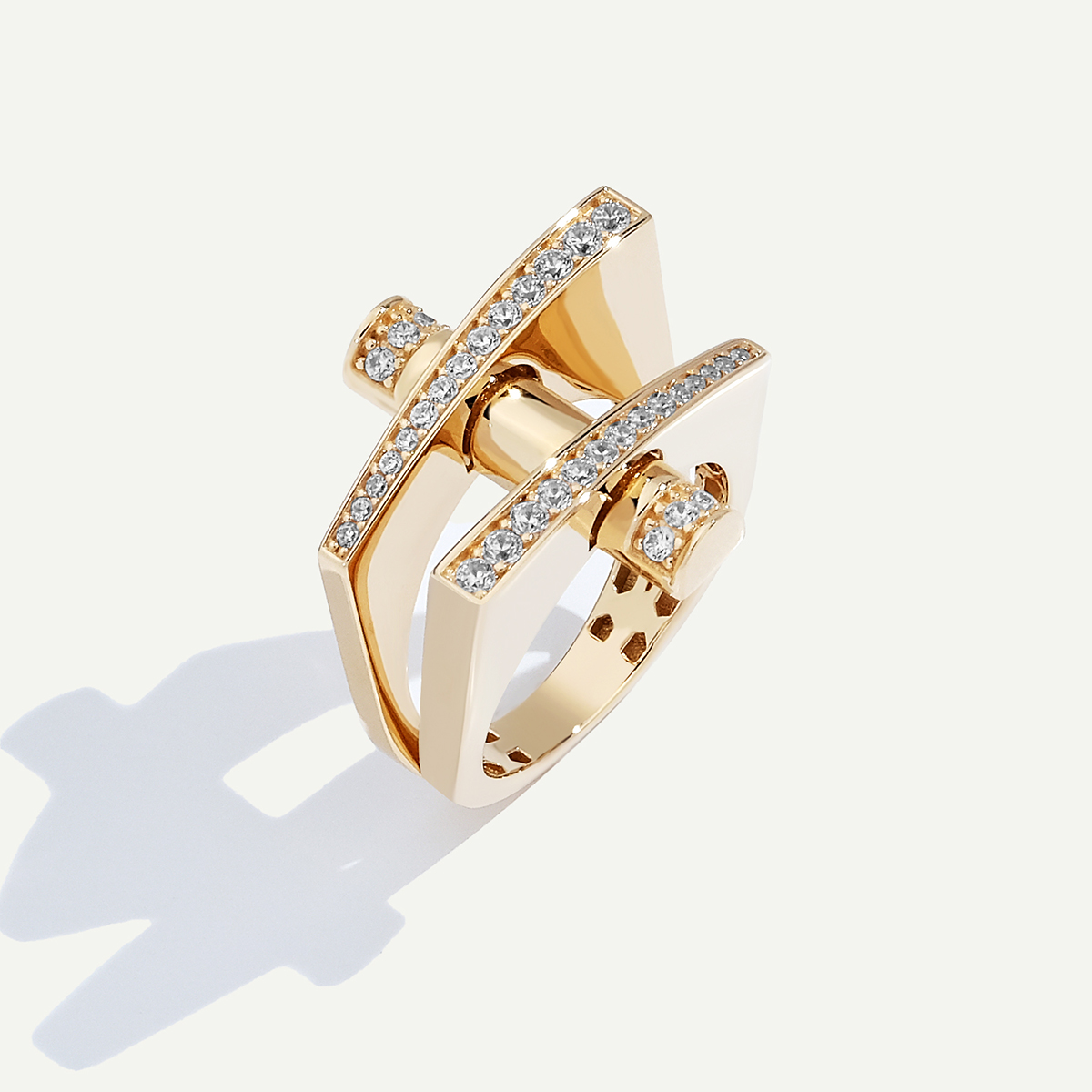 Vega 14 Ayar Altın İkili Silindir Formlu Taşlı Yüzük