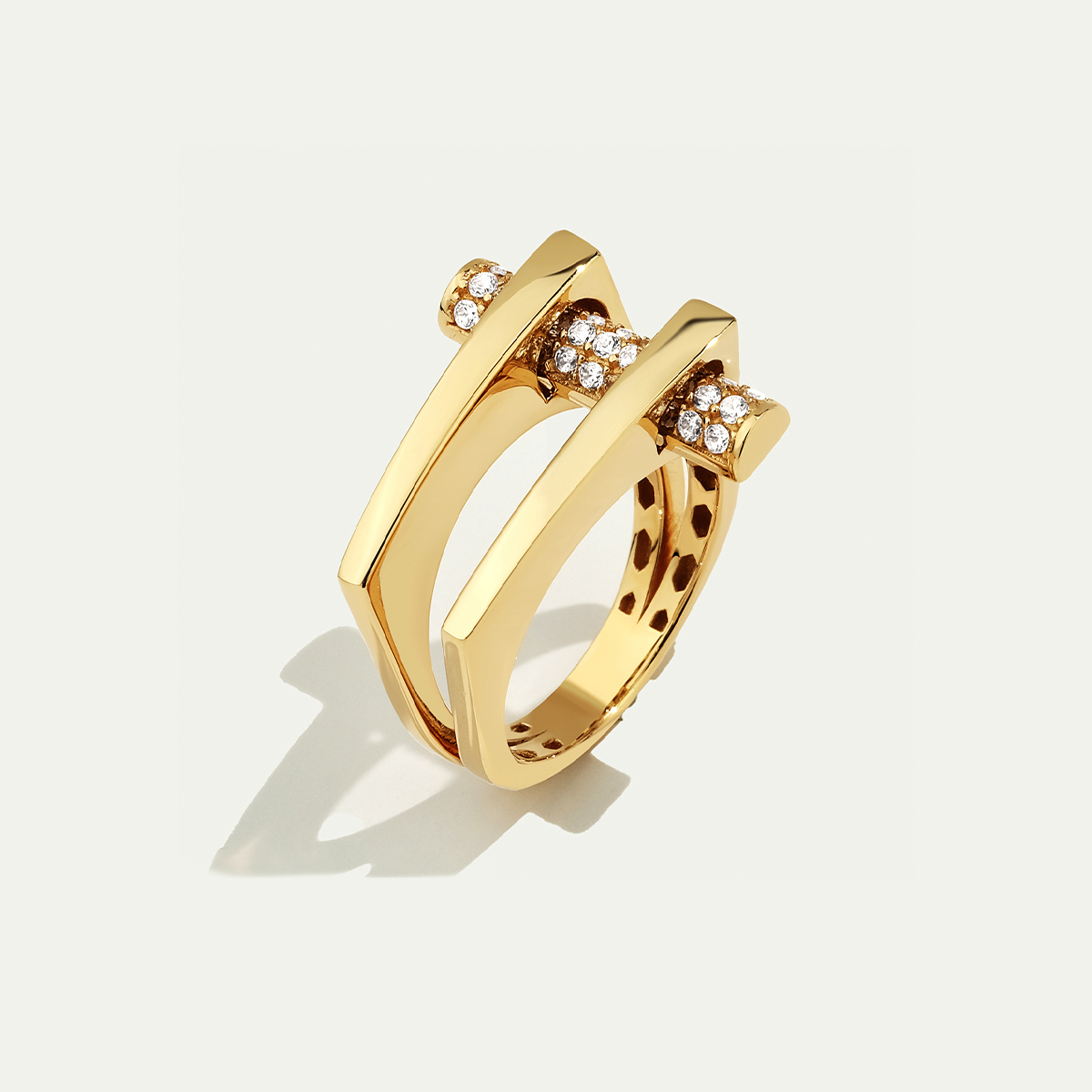 Regold’un 14 Ayar Altın Çift Sıra Geometrik Taşlı Yüzük modeli, güçlü tasarım çizgileri ve modern dokusuyla dikkat çekiyor. İki paralel altın bandın oluşturduğu sıra dışı form, yüzüğe heykelsi bir karakter kazandırıyor. Orta bölümde yer alan parlak taşlı silindir detayları ise yüzüğe hem hareket hem de ışıltı katıyor. Minimal ve cesur tasarımıyla öne çıkan bu model, modern tarzını takılarıyla yansıtmak isteyenler için mükemmel bir seçim. Günlük stilinize farklı bir dokunuş yapabileceği gibi, özel davetlerde de güçlü bir aksesuar olarak öne çıkar. Regold logolu özel kutusunda ve garanti belgesi ile sunulmaktadır.
