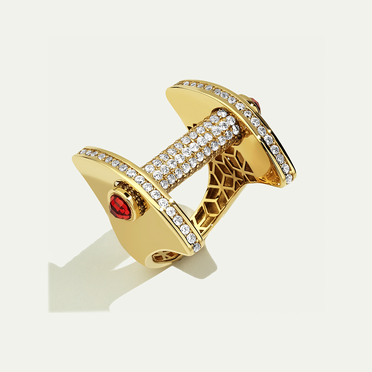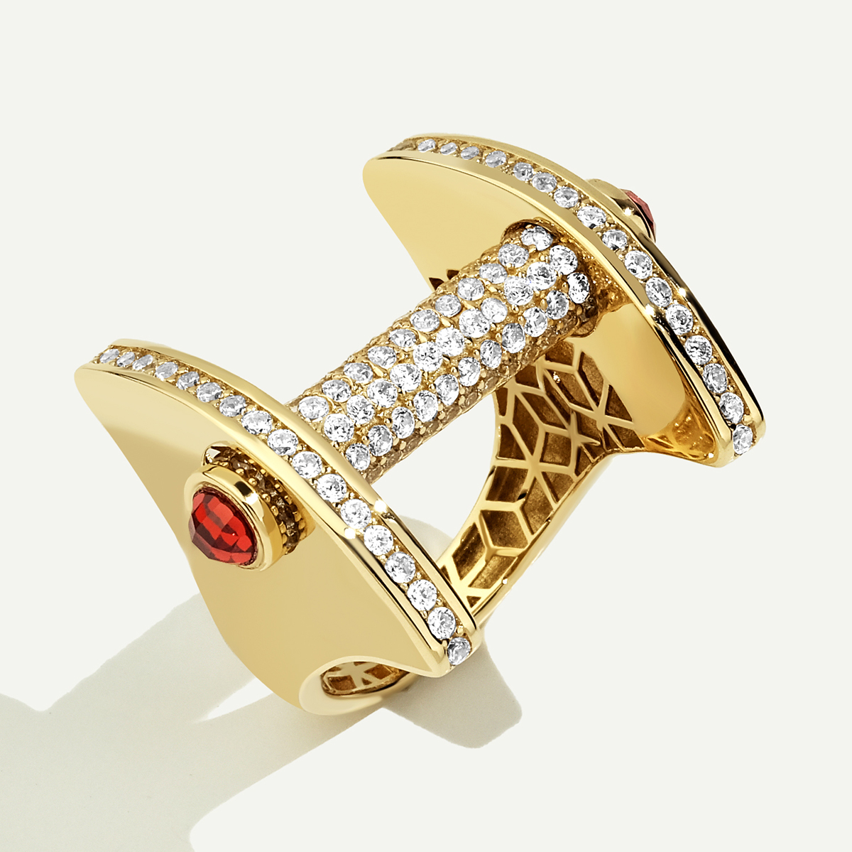 Parlak altın yüzeyiyle öne çıkan tasarım, kenarlarını çevreleyen kırmızı taşlarla sıcak bir ışıltı kazanıyor ve bu özel detaylar Vega 14 Ayar Altın Kırmızı Taşlı Yüzük modeline sofistike bir görünüm katıyor. Modern çizgileriyle hem günlük kullanıma hem de özel davetlere uyum sağlayan bu zarif parça stilinizi ön plana çıkarıyor. Regold logolu özel kutusunda ve garanti belgesi ile sunulmaktadır.