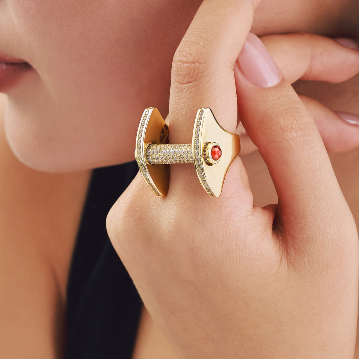 Vega 14 Ayar Altın Kırmızı Taşlı Yüzük