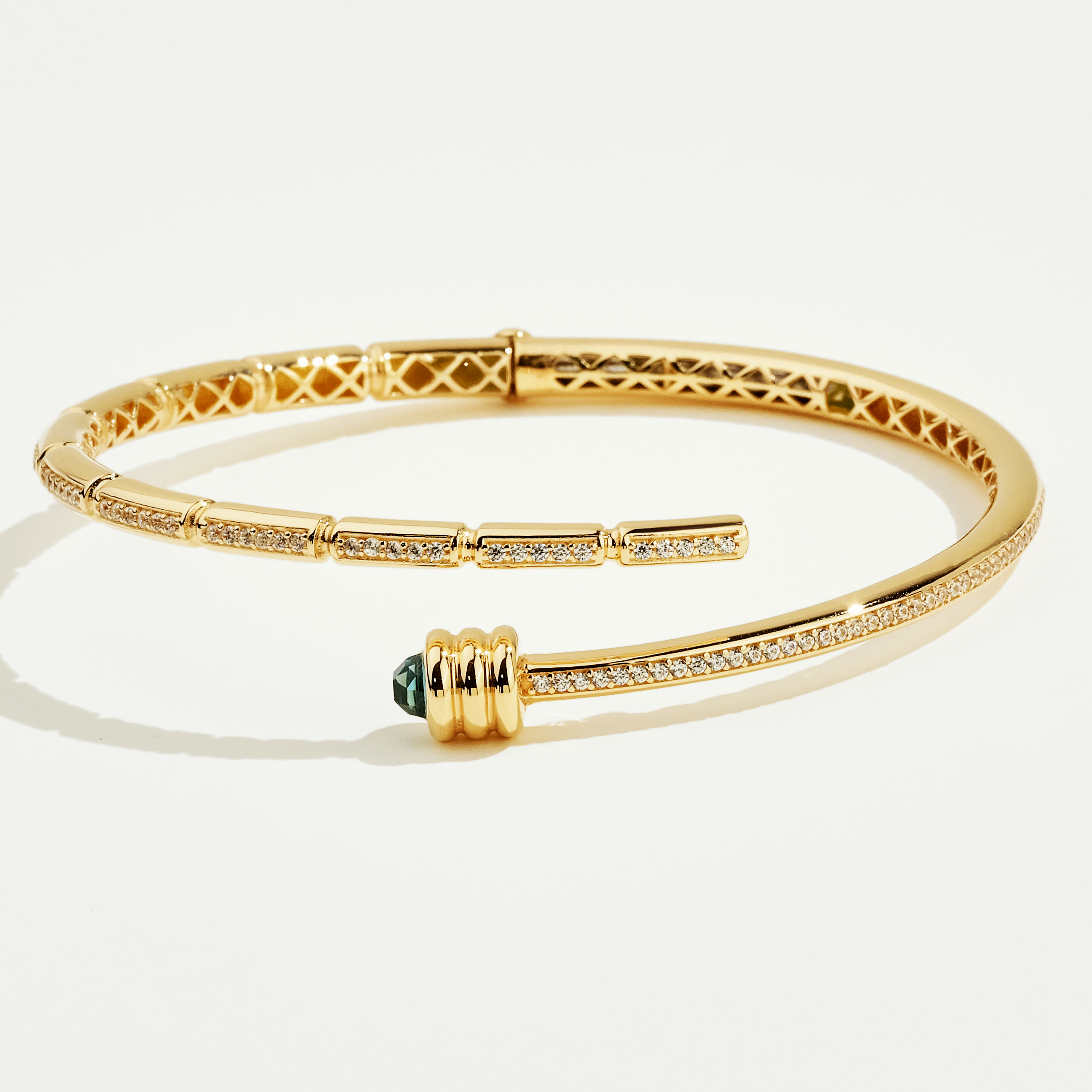 Mimari şıklık ve göz alıcı zarafeti birleştiren bu eşsiz tasarım, Vega 14 Ayar Altın Minimal Mavi Taşlı Kelepçe adıyla, parlak altından üretilmiş açık formlu bir bileziği ifade eder. Kelepçenin bir ucu, derin mavi renkteki büyüleyici, yivli silindir formlu taş detaylarıyla vurgulanır. Ayrıca gövdenin ön yüzeyi, zarif dikey barlar içine yerleştirilmiş parıltılı beyaz taş sıralarıyla dikkat çekici bir ışıltı sunar. Çapraz desenli iç yüzey detayıyla lüks bir incelik kazanan bu model, modern stilinize sanatsal ve cesur bir dokunuş katmak için ideal bir parçadır. Regold logolu özel kutusunda ve garanti belgesi ile sunulmaktadır.
