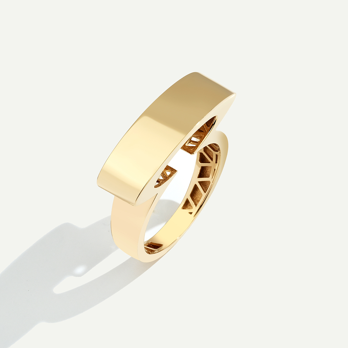 Vega 14 Ayar Altın Modern Blok Formlu Yüzük