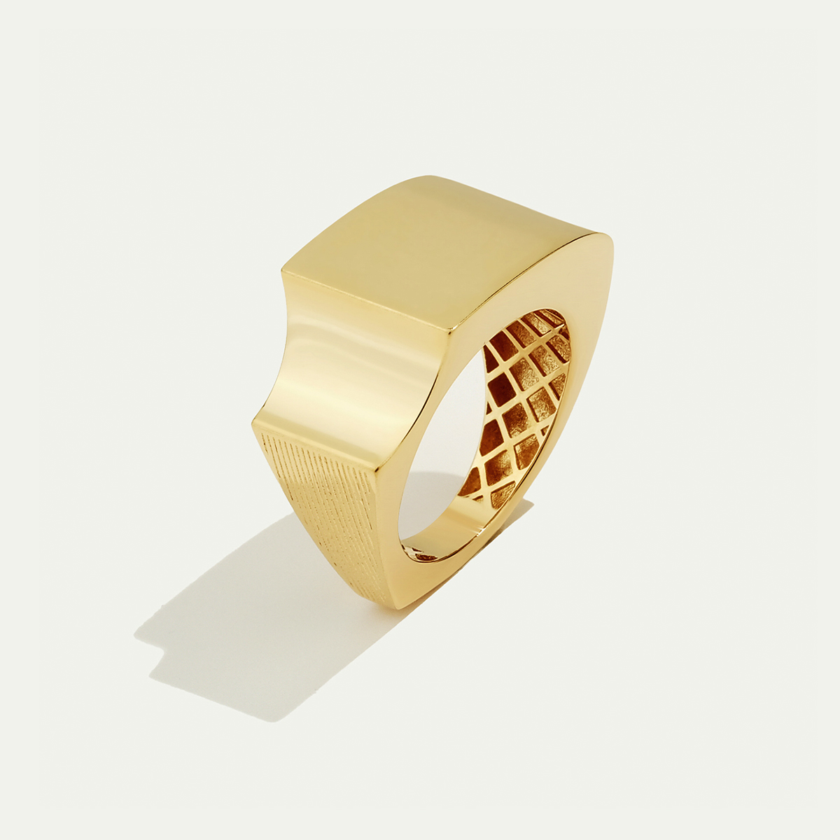 Modern ve cesur tasarımıyla öne çıkan Vega 14 Ayar Altın Parlak Yüzeyli Yüzük, köşeli ve keskin hatlarıyla güçlü bir stil ifadesi sunar. Minimalist çizgileriyle maskülen bir duruş sergilerken, altının parlak yüzeyi sofistike bir şıklık katar. Günlük kullanımda farklı bir tarz arayanlar için ideal olduğu gibi, özel kombinlerde de dikkat çekici bir tamamlayıcıdır. Zamansız tasarımı sayesinde uzun yıllar severek kullanılabilecek özel bir modeldir. Regold logolu özel kutusunda ve garanti belgesi ile sunulmaktadır.