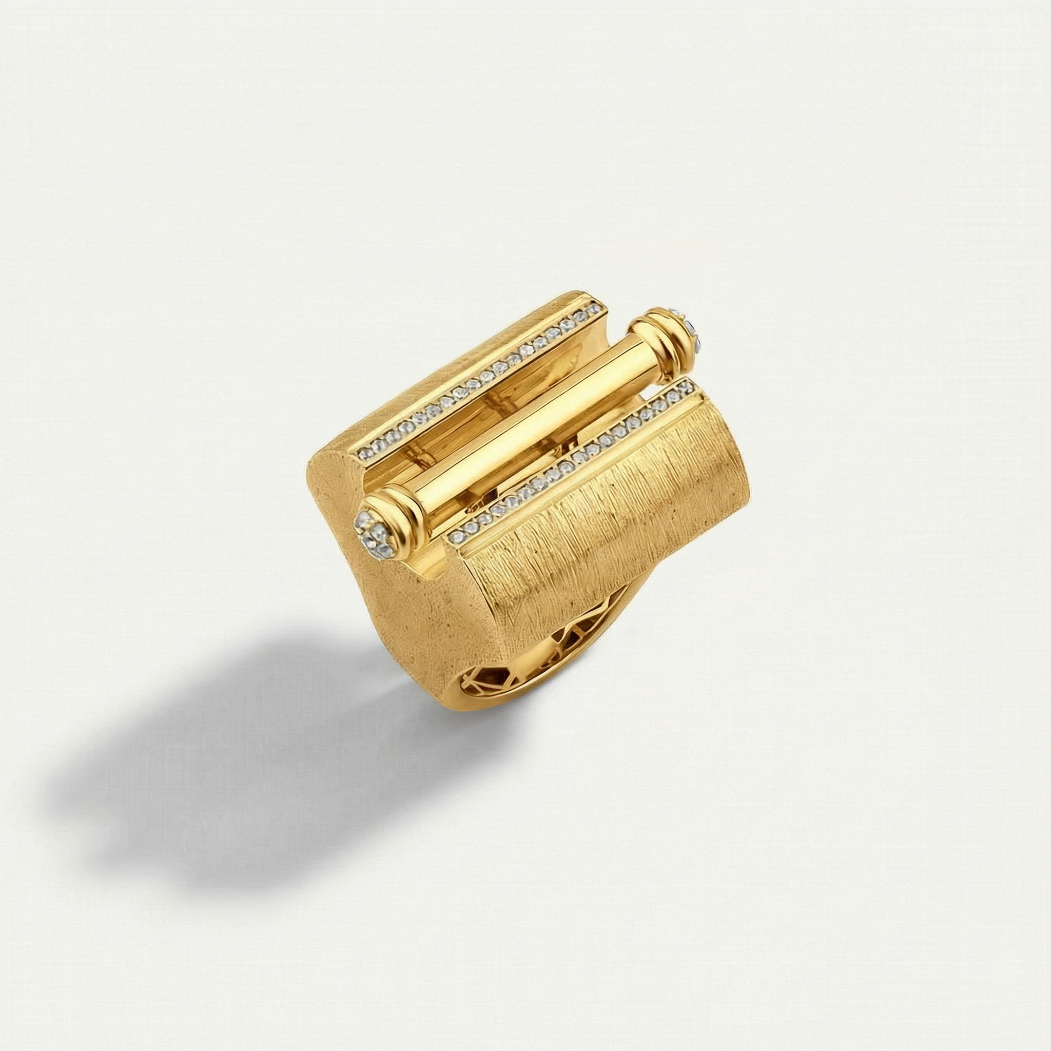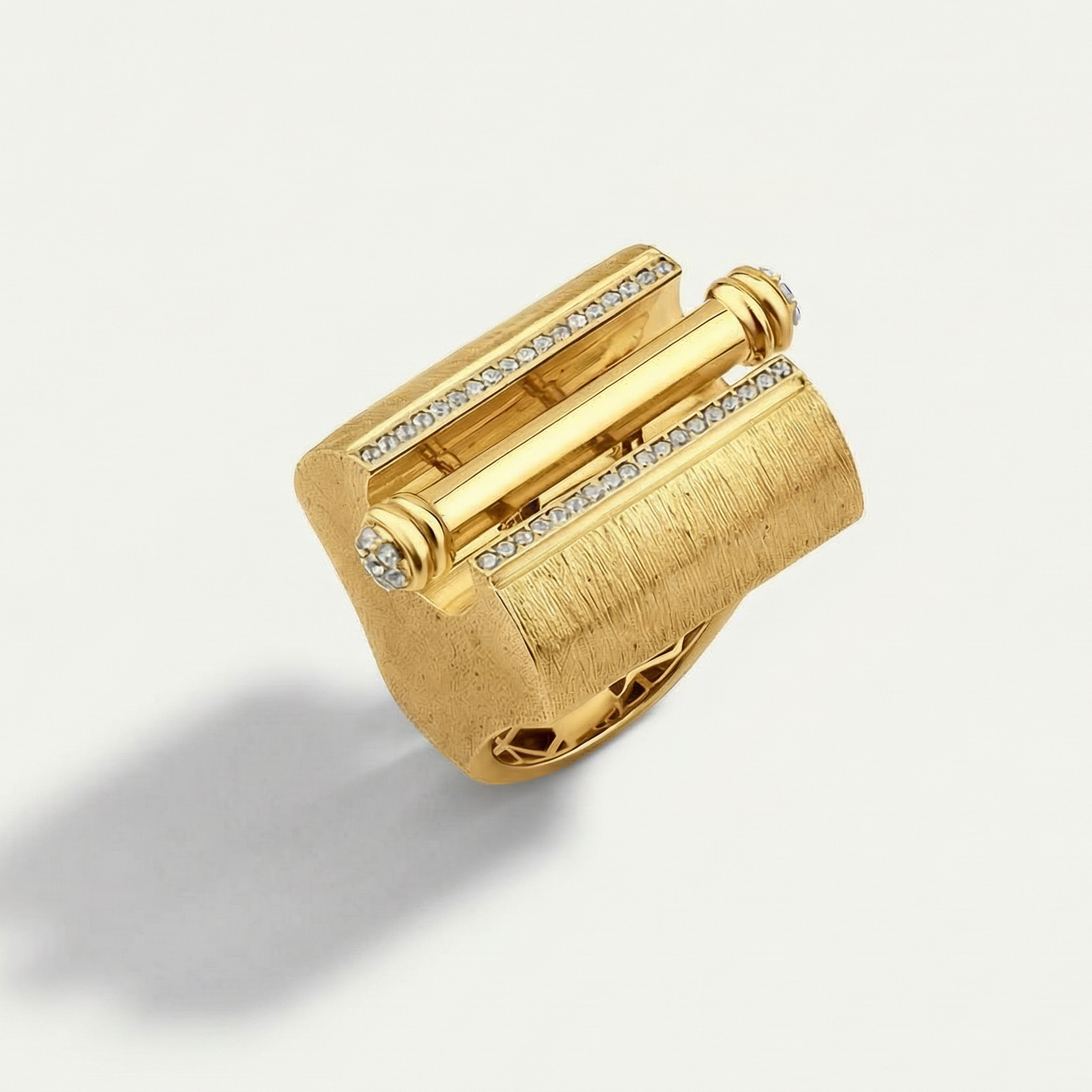 Vega 14 Ayar Altın Silindir Formlu Mat Yüzeyli Taşlı Yüzük
