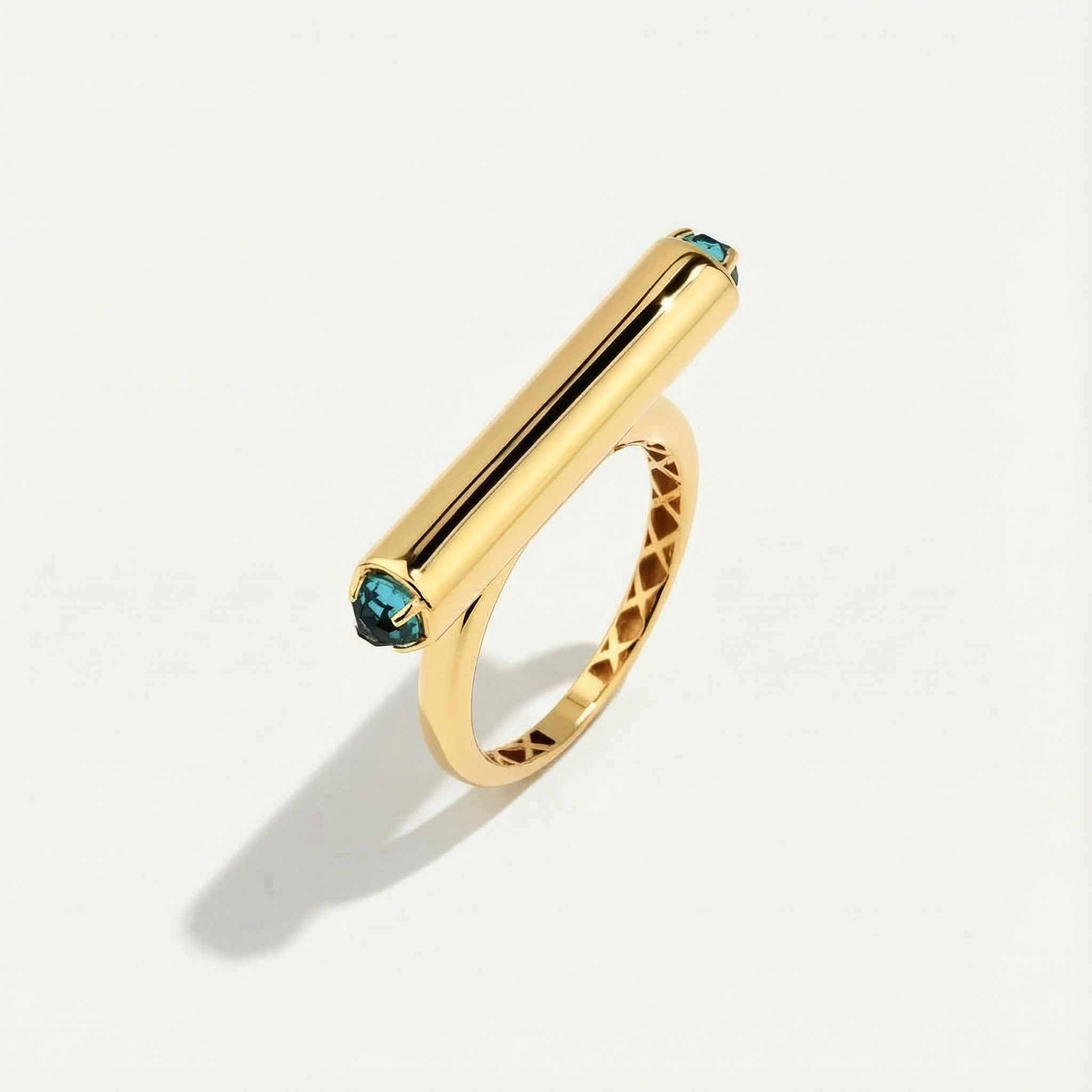 Vega 14 Ayar Altın Silindir Formlu Mavi Taşlı Yüzük
