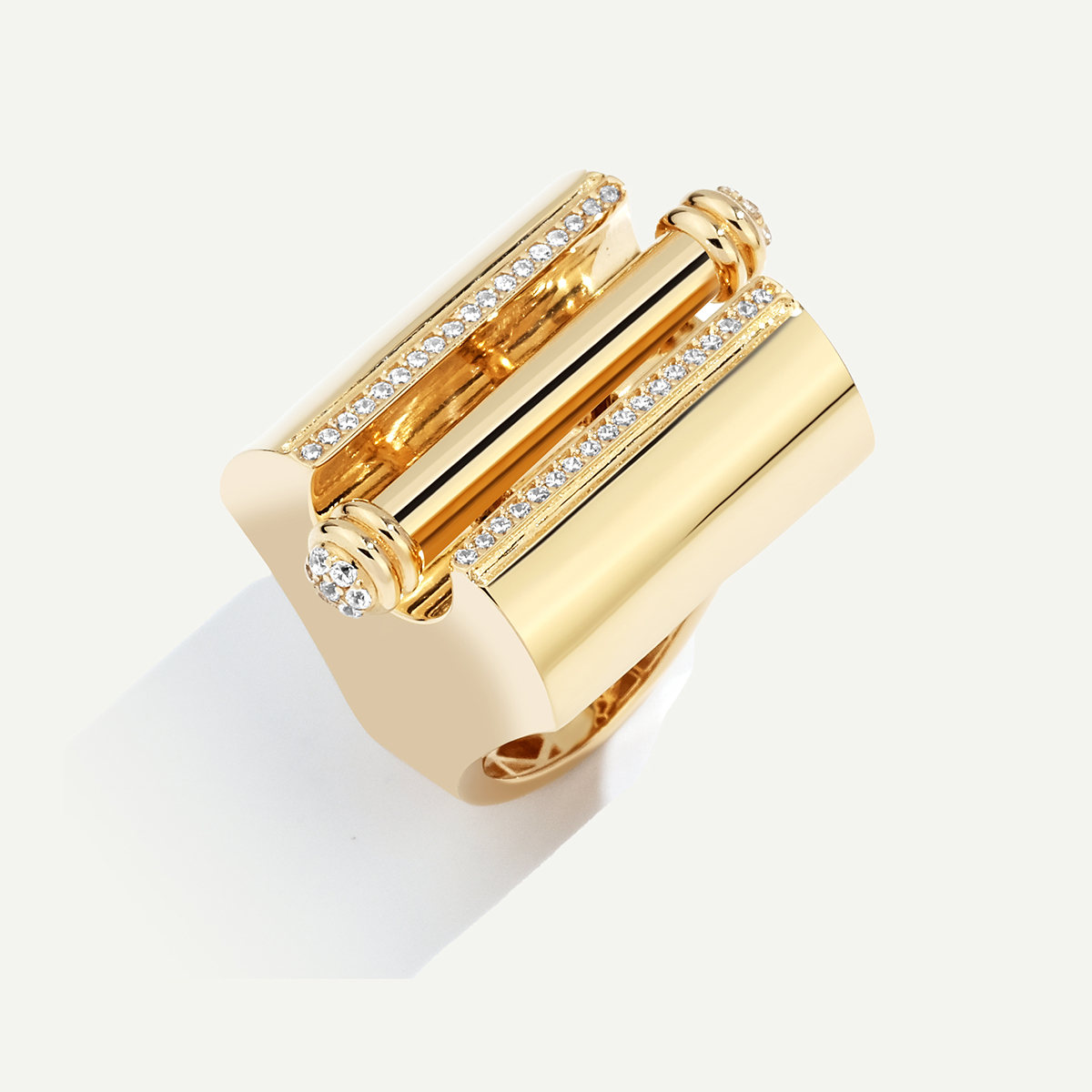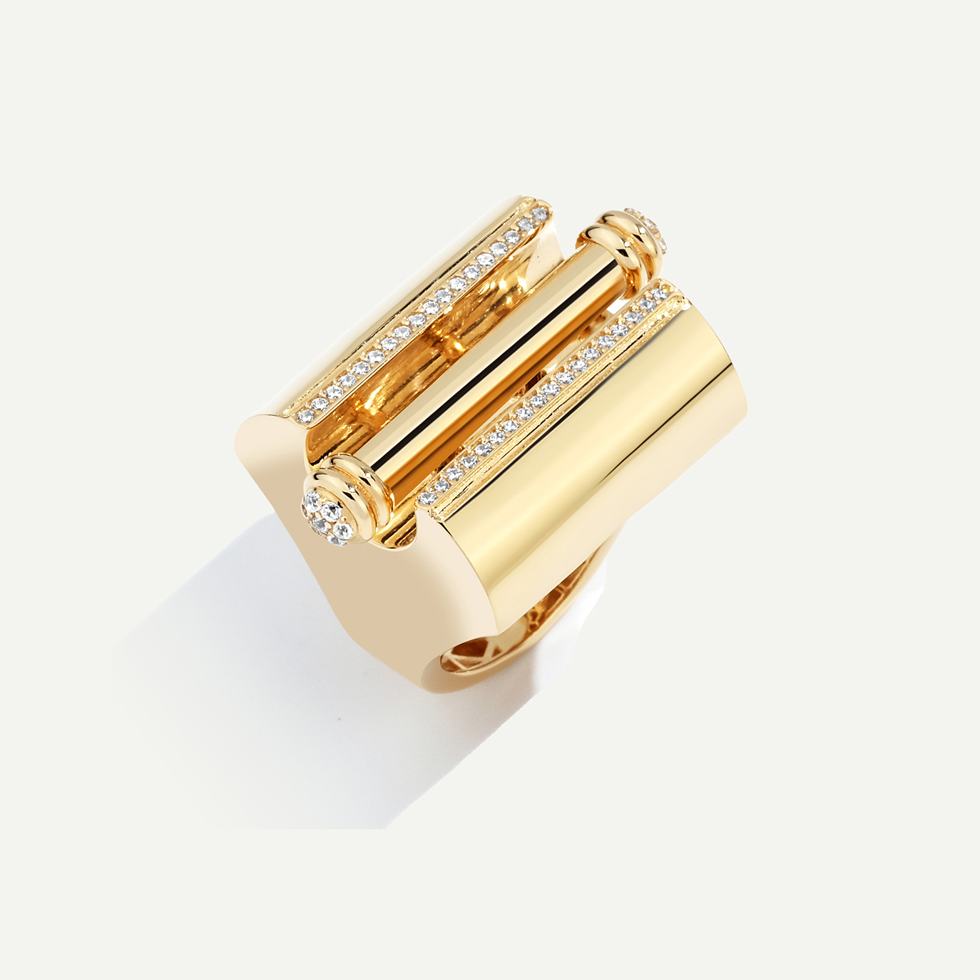 Vega 14 Ayar Altın Silindir Formlu Taşlı Yüzük