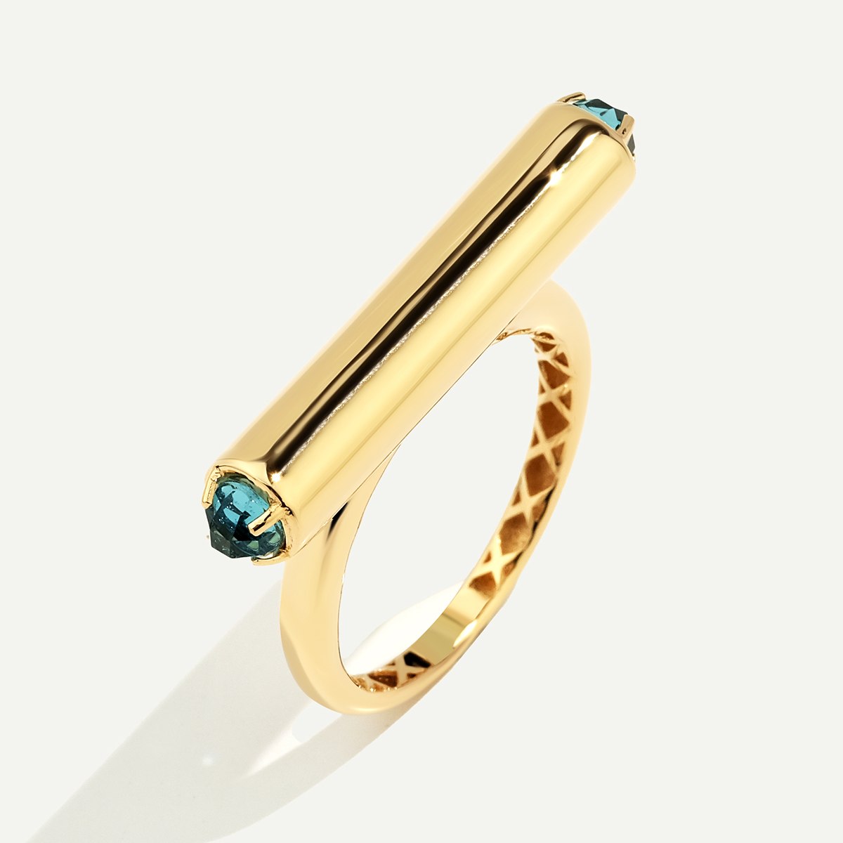 Vega 14 Ayar Altın Silindir Formlu TMavi Taşlı Yüzük