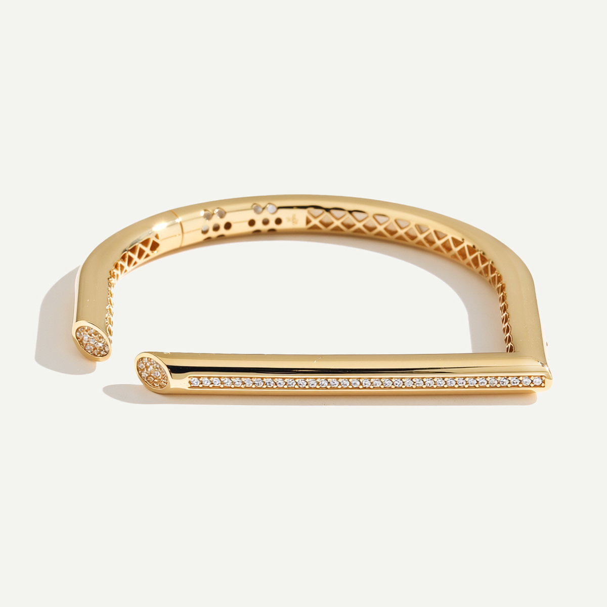 Modern çizgilerin zarafetle buluştuğu Vega 14 Ayar Altın Taşlı Kelepçe, 14 ayar Altının ışıltısını zarif taş detaylarıyla tamamlıyor. Minimal ve geometrik tasarımı sayesinde hem günlük hayatta hem de özel günlerde şıklığınızı ön plana çıkarır. Ön yüzünde ince bir sıra halinde işlenen parlak taşlar, kelepçeye sofistike bir ışıltı katarken güçlü formu modern bir stil sunar. Regold logolu özel kutusunda ve garanti belgesi ile sunulmaktadır.