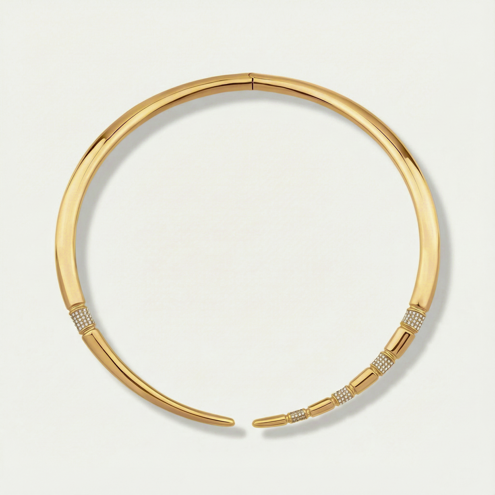 Vega 14 Ayar Altın Taşlı Set içinde yer alan choker kolye, yüzük, küpe ve kelepçe birlikte tasarlanarak uyumlu bir bütün oluşturuyor. Choker kolyenin zarif oturuşu boyunda dikkat çekerken, yüzük ve küpe üzerindeki taşlı detaylar yüz hattına ışık katıyor; kelepçe ise bileğe şık bir dokunuş ekleyerek setin tüm parçalarında altının parlak dokusu ve taşların ışıltısı dengeli bir şekilde yansıtılıyor. Set, özel günlerden günlük kombinlere kadar her ortamda göz alıcı bir bütünlük sunar. Regold logolu özel kutusunda ve garanti belgesi ile sunulmaktadır.